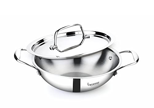 Crystal TriPro -Triply Stainless Steel Kadai with Lid – 22 cm (Induction Bottom), Silver (CTP-KD-003) is available on Amazon at best discounted online price. Original price of this product is ₹ 2930. You can buy this product at discounted rate ₹ 899.23.