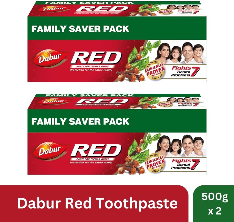 Dabur Red Ayurvedic Paste (Combo Pack 1+1, 500g each) Toothpaste(1000 g, Pack of 2) is available on flipkart at best discounted online price. Original price of this product is ₹ 634. You can buy this product at discounted rate ₹ 317.
