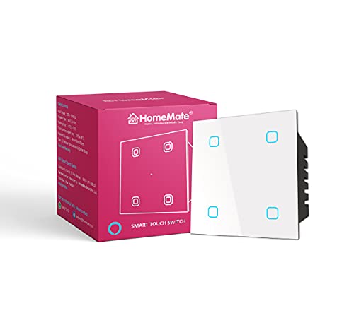 HomeMate Wi-Fi Smart 4 Gang Touch Switch (White, Pack of 1) | No Hub Required | Works with Amazon Alexa, Google Assistant & Siri is available on Amazon at best discounted online price. Original price of this product is ₹ 5990. You can buy this product at discounted rate ₹ 1098.