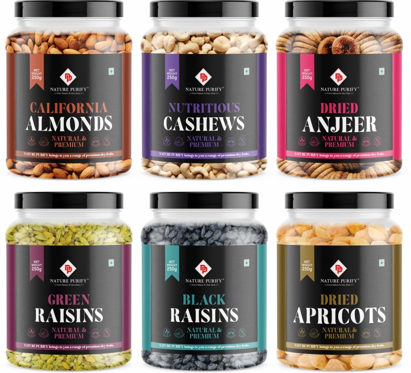 Nature Purify Dry Fruits Combo Pack 1.5kg (250g Each All Premium) Almonds, Cashews, Figs, Apricots, Raisins(6 x 0.25 kg) is available on flipkart at best discounted online price. Original price of this product is ₹ 2298. You can buy this product at discounted rate ₹ 899.