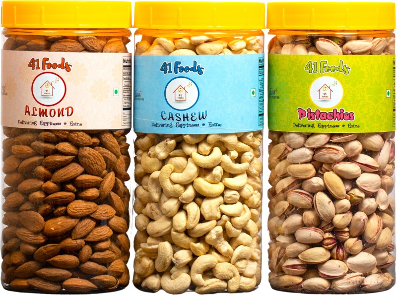 41 foods Dry fruits combo pack of Pistachios Almonds Cashews | kaju badam pista 600GM Almonds, Cashews, Pistachios(3 x 200 g) is available on flipkart at best discounted online price. Original price of this product is ₹ 1500. You can buy this product at discounted rate ₹ 687.