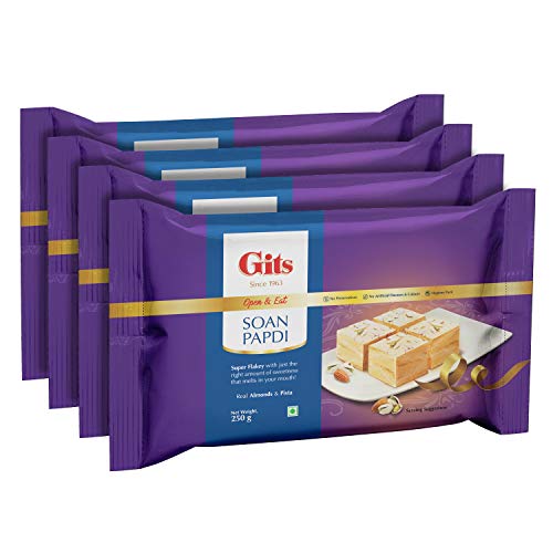 Gits Soan Papdi, Ready to Eat Indian Dessert, 1000g (Pack of 4, 250g Each) is available on Amazon at best discounted online price. Original price of this product is ₹ 300. You can buy this product at discounted rate ₹ 273.