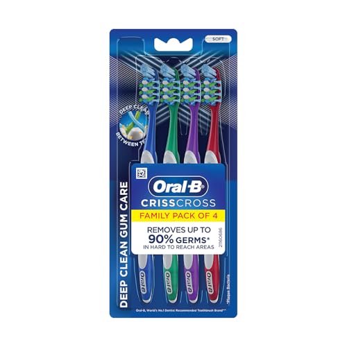 Oral B Criss Cross Gum Care Manual Toothbrush, Family pack of 4 toothbrushes, Soft, For Adults is available on Amazon at best discounted online price. Original price of this product is ₹ 380. You can buy this product at discounted rate ₹ 145.07.