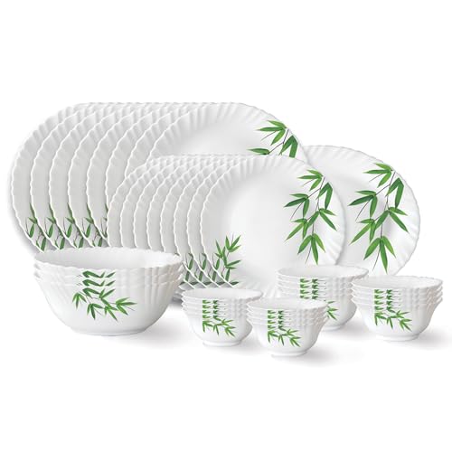 Larah by Borosil Bamboo Leaves Fluted Series Opalware Dinner Set | 33 Pieces for Family of 6 | Microwave & Dishwasher Safe | Bone-Ash Free | Crockery Set for Dining & Gifting | Plates & Bowls | White is available on Amazon at best discounted online price. Original price of this product is ₹ 3995. You can buy this product at discounted rate ₹ 2249.