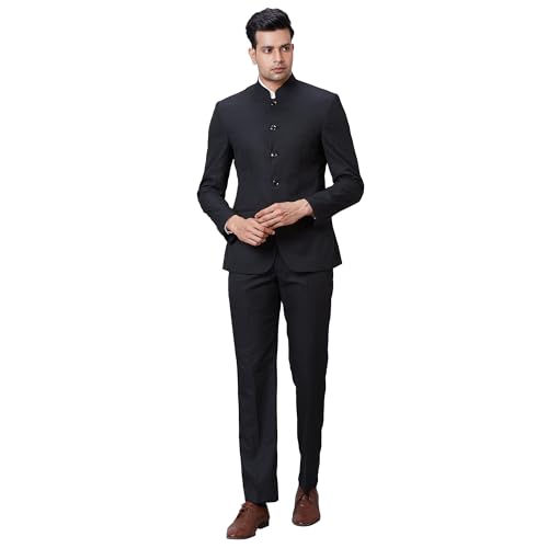 Park Avenue Men Regular Fit Structure Pattern Poly Viscose Blend Mandarin Collar Flat Front Formal Suit (Size: 96)-PIDL00288-K8 Black is available on Amazon at best discounted online price. Original price of this product is ₹ 9999. You can buy this product at discounted rate ₹ 4499.