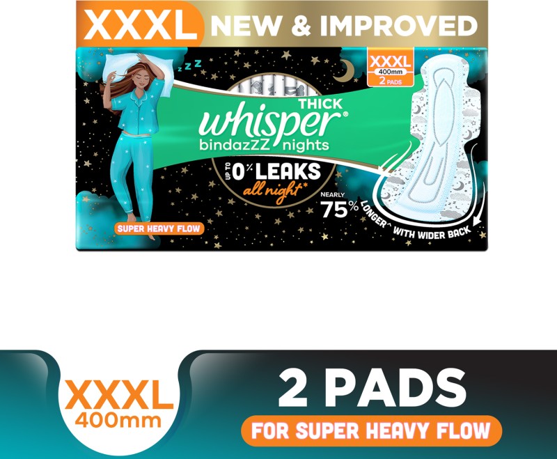Whisper Bindazzz Nights Sanitary Pad(Pack of 2) is available on flipkart at best discounted online price. Original price of this product is ₹ 55. You can buy this product at discounted rate ₹ 55.