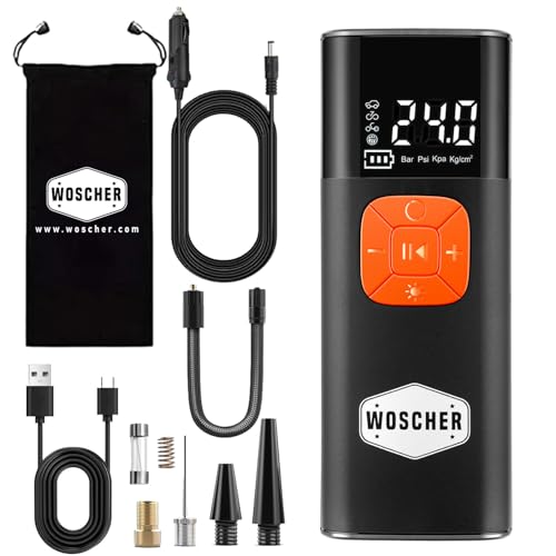 - 4000mAh Rechargeable Battery: Woscher i6 car tyre inflator Provides 4000mAh to long-lasting power for multiple inflations on the go.
