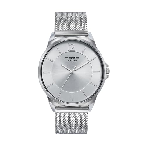 - Sonata Poze Quartz Silver Dial Silver Metal Strap for Men