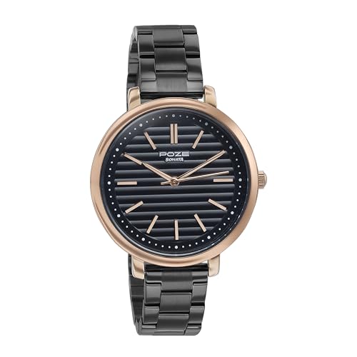 Sonata Poze Quartz Black Dial Black Metal Strap for Women-SP80081KM02WF is available on Amazon at best discounted online price. Original price of this product is ₹ 2425. You can buy this product at discounted rate ₹ 730.
