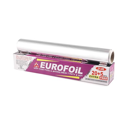 Eurofoil Food Wrap Aluminium Foil 25 Mtr (20+5) | Food Grade Strong & Durable Foil | for Packing, Wrapping, Cooking, Baking & Grilling | Non-Stick Multipurpose Parchment Paper | Keeps Food Fresh is available on Amazon at best discounted online price. Original price of this product is ₹ 200. You can buy this product at discounted rate ₹ 189.