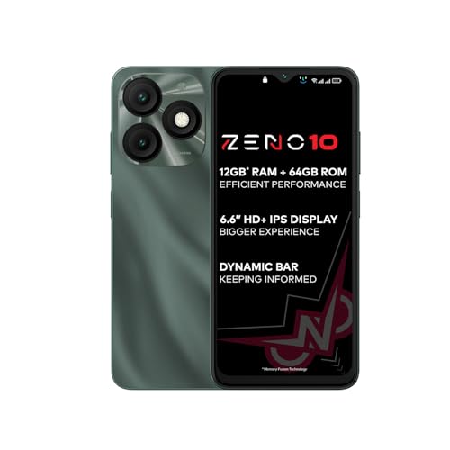 itel ZENO 10|6.6″ HD+ Display with Dynamic Bar| 4GB RAM +64GB ROM, Upto 12GB RAM with Memory Fusion|Octacore Processor|8MP AI Dual Rear Cam|5000 mAh Battery| Phantom Crystal is available on Amazon at best discounted online price. Original price of this product is ₹ 7399. You can buy this product at discounted rate ₹ 6199.
