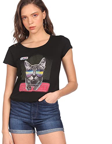 SUGR by Unlimited Women Regular Fit T-Shirt (Black_S) is available on Amazon at best discounted online price. Original price of this product is ₹ 999. You can buy this product at discounted rate ₹ 88.42.