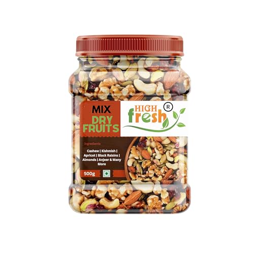 HighFresh 100% Natural and Premium Healthy Mix Dry Fruits and Nuts 500 GM | Healthy for Every Occasion Dry Fruits Nuts | Almonds | Cashew | Kishmish | Apricot | Black Raisins | Dried Kiwi is available on Amazon at best discounted online price. Original price of this product is ₹ 340. You can buy this product at discounted rate ₹ 266.