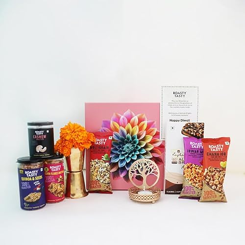 - Delightful Assortment: This Diwali gifts box features a delightful assortment of healthy snacks including salted premium cashews, jowar mix, and chana jor, making it the perfect gift hamper for employees, family, and friends. Celebrate the joy of Deepawali with a gift that combines health and indulgence!