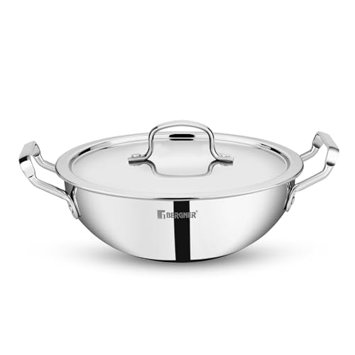 BERGNER Tripro TriPly Stainless Steel 24cm Deep Kadai with Lid, 3 L Kadhai, Durable Stay Cool Handles, Heavy Bottom, Metal Spatula Friendly – Induction Base and Gas Ready (5-Year Warranty is available on Amazon at best discounted online price. Original price of this product is ₹ 2695. You can buy this product at discounted rate ₹ 1799.