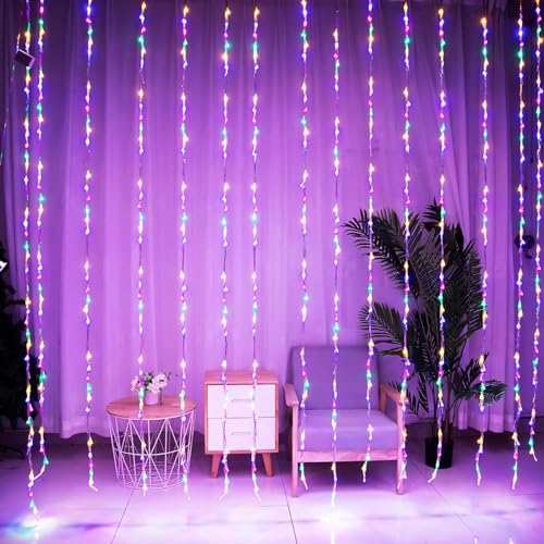 - Package Content: 1 x 180 LED With 8 Mode Multicolor Water Fall Curtain Light (Multicolor, 10×10 Feet)