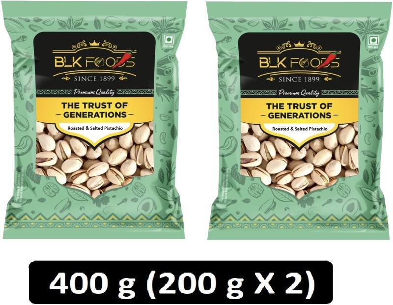BLK FOODS Tasty Crunchy (200g X 2)400g Jumbo Pistachio Roasted & Salted (Inshell) Pistachios(400 g) is available on flipkart at best discounted online price. Original price of this product is ₹ 1600. You can buy this product at discounted rate ₹ 449.