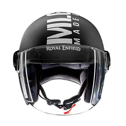 Royal Enfield ISI Certified Open Face Riding MLG Helmet with Clear Visor Matt Black & White-Impact Protection, Scratch Resistance, Anti-Microbial Fabric, Size: XL(61-62Cm) is available on Amazon at best discounted online price. Original price of this product is ₹ 2100. You can buy this product at discounted rate ₹ 1050.