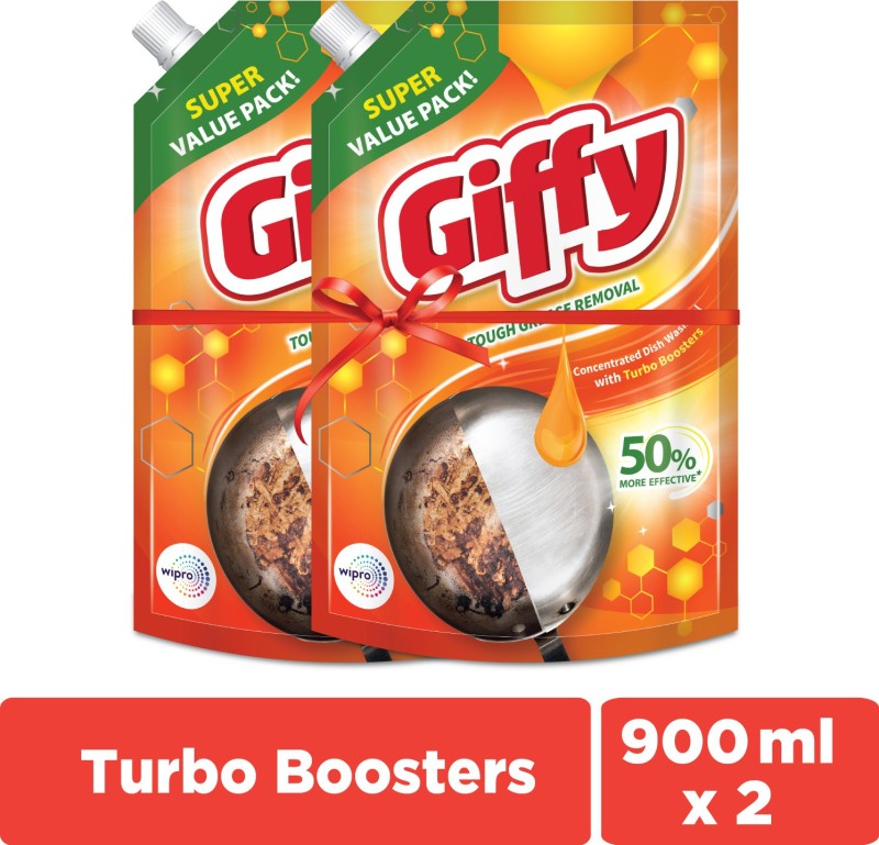 Giffy Liquid Dish Wash Gel 50% More Effective with Turbo Boosters Dish Cleaning Gel(Orange, 2 x 0.9 L) is available on flipkart at best discounted online price. Original price of this product is ₹ 478. You can buy this product at discounted rate ₹ 478.
