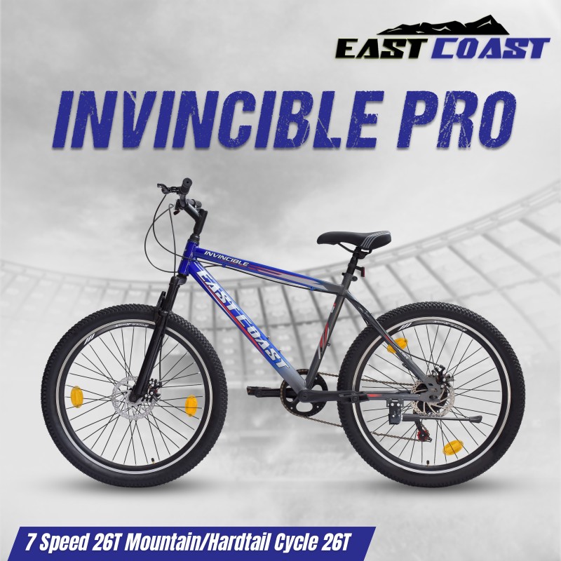 EAST COAST INVINCIBLE PRO 7 SPEED 26 T Mountain/Hardtail 26 T Mountain Cycle(7 Gear, Blue, Black, Only Front Suspension) is available on flipkart at best discounted online price. Original price of this product is ₹ 11999. You can buy this product at discounted rate ₹ 6199.