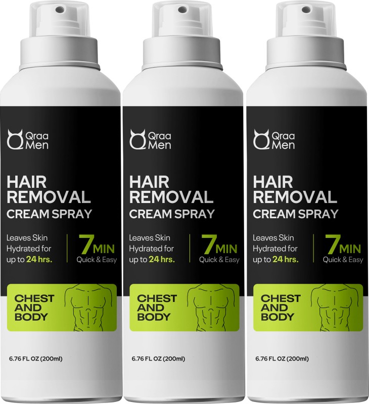 Qraa Men Hair Removal Cream Spray| Painless Body Hair Removal Powder Spray For Men’s Spray(600 ml, Set of 3) is available on flipkart at best discounted online price. Original price of this product is ₹ 2250. You can buy this product at discounted rate ₹ 557.