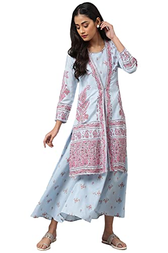 W for Woman Light Blue Printed Kalidar Dress with Jacket_22AUW18254-119021_2XL is available on Amazon at best discounted online price. Original price of this product is ₹ 4999. You can buy this product at discounted rate ₹ 955.77.