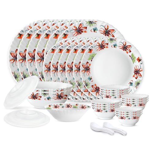 Larah by Borosil Silk Series Bali Opalware Dinner Set | 35 Pieces for Family of 6 | Microwave & Dishwasher Safe | Bone-Ash Free | Crockery Set for Dining & Gifting | Plates & Bowls | Floral Pattern is available on Amazon at best discounted online price. Original price of this product is ₹ 3640. You can buy this product at discounted rate ₹ 1299.