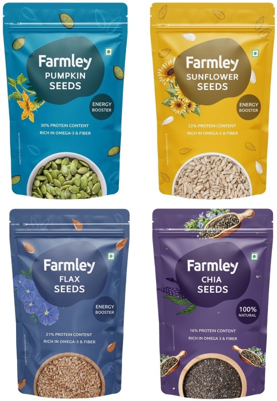Farmley Premium Seeds 800g, Combo Pack Of 4(Each 200g) Chia Seeds, Brown Flax Seeds, Pumpkin Seeds, Sunflower Seeds(800 g, Pack of 4) is available on flipkart at best discounted online price. Original price of this product is ₹ 716. You can buy this product at discounted rate ₹ 418.
