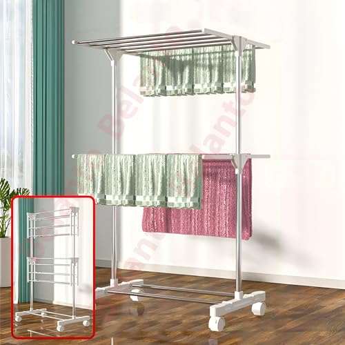 Belanto Stainless Steel Portable Double Pole Telescopic 2 Layer Clothes Drying Rack, Foldable Clothes And Garment Hanging Rack, 2 Tier Laundry Cloth Drying Stand With Wheels Balcony Indoor is available on Amazon at best discounted online price. Original price of this product is ₹ 2499. You can buy this product at discounted rate ₹ 1376.