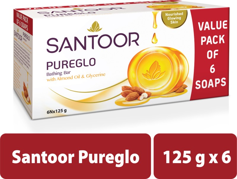 Santoor by Wipro PureGlo Glycerine Bathing Bar Soap with Almond Oil for Nourished & Glowing Skin(6 x 125 g) is available on flipkart at best discounted online price. Original price of this product is ₹ 540. You can buy this product at discounted rate ₹ 226.
